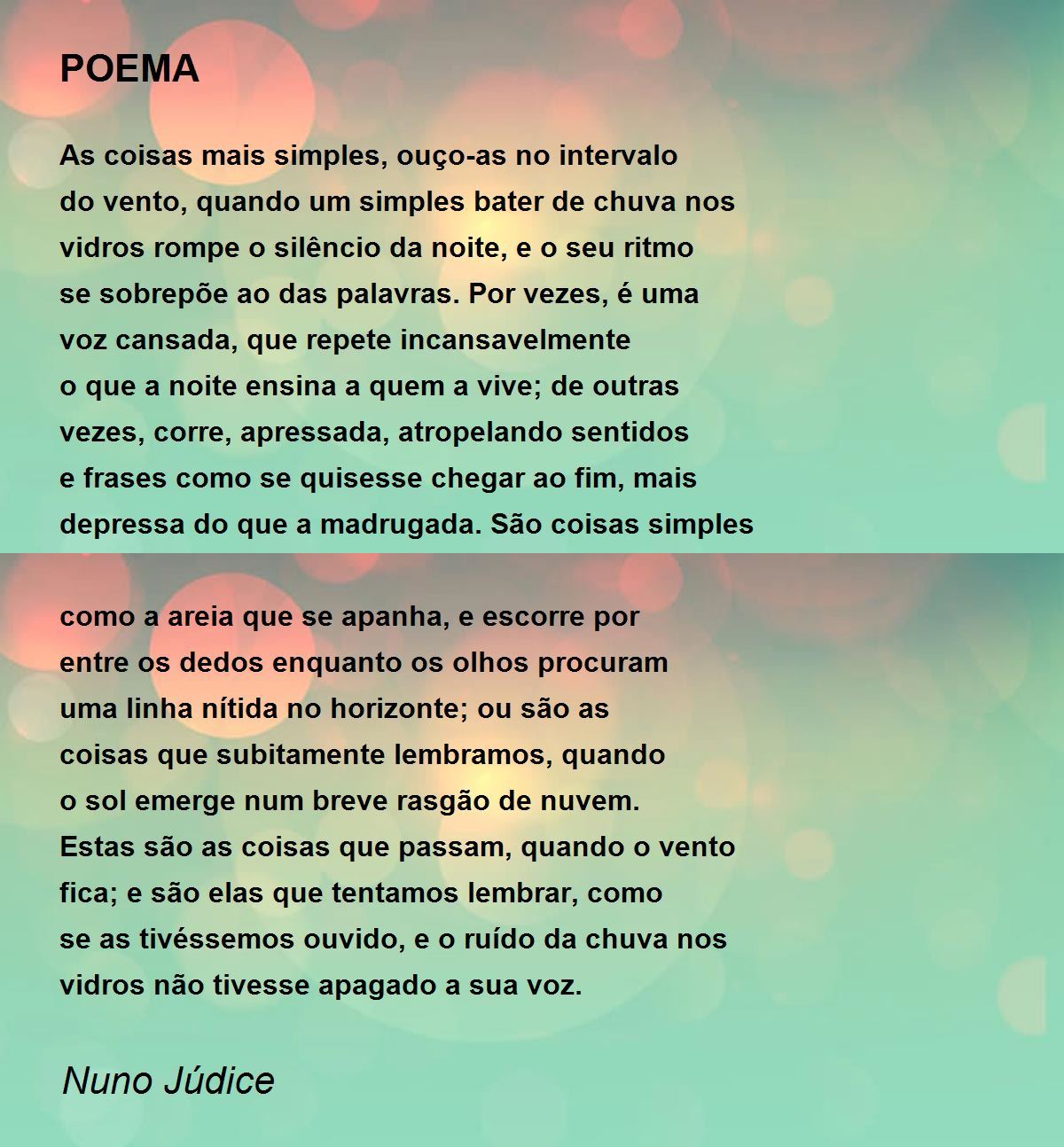 depressa do que a madrugada. São coisas simples