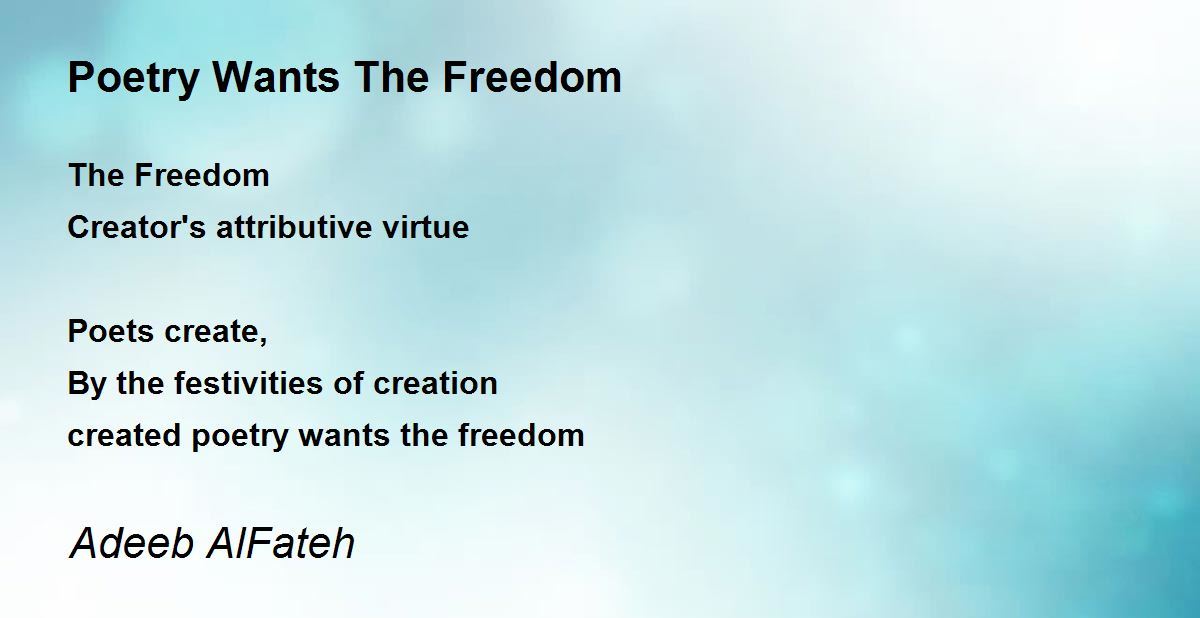 The Freedom Creator's attributive virtue Poets create, By the festivities of creation created poetry wants the freedom
