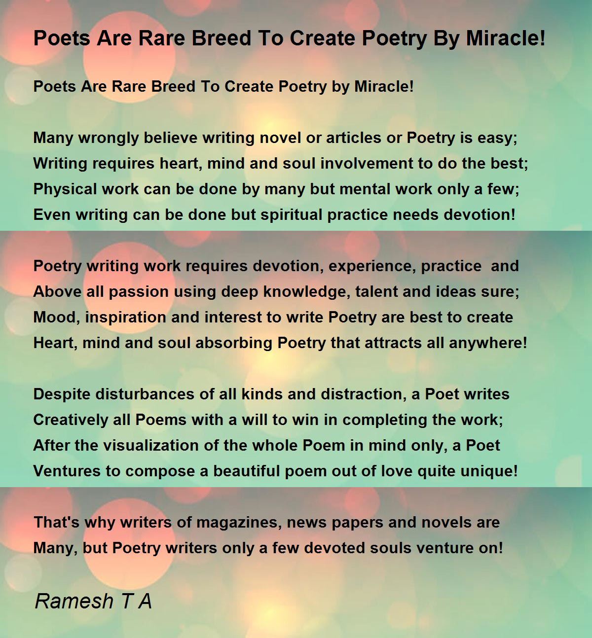 Poets Are Rare Breed To Create Poetry by Miracle!