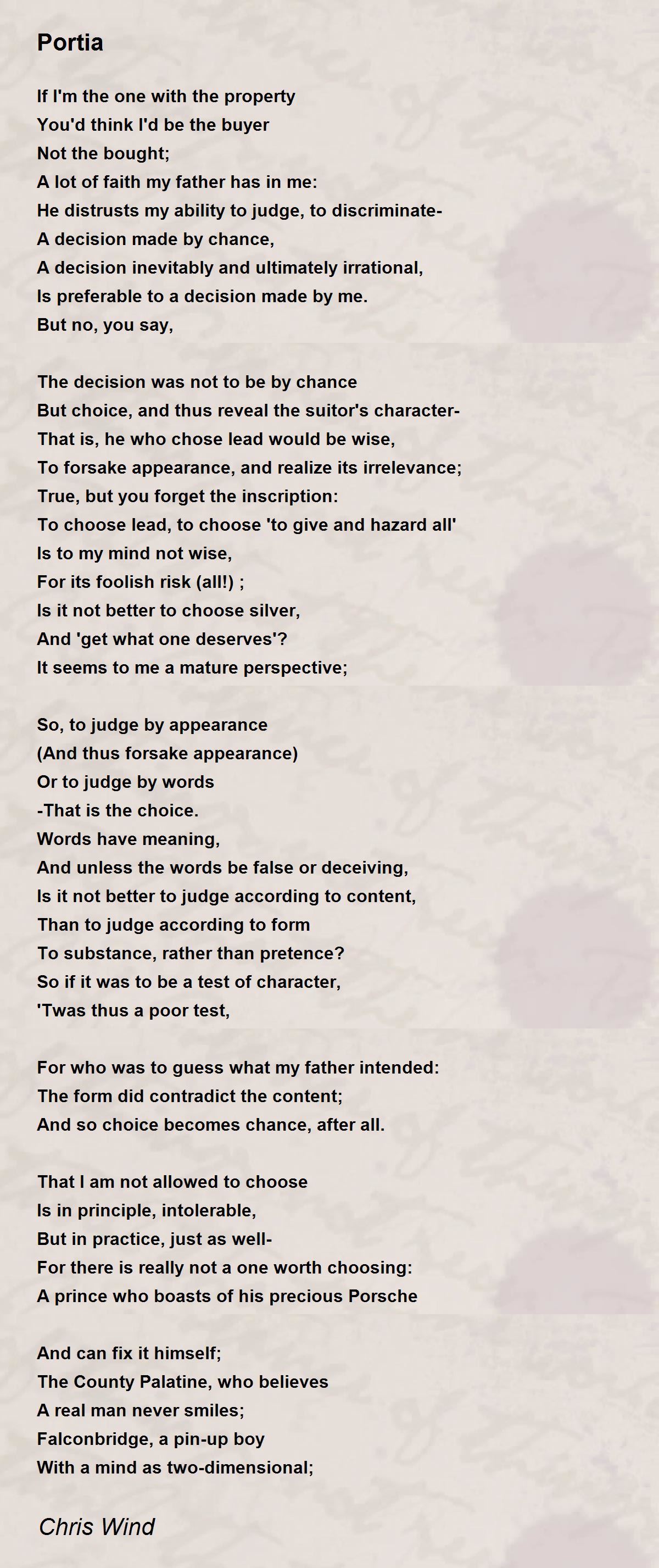 But choice, and thus reveal the suitor's character-