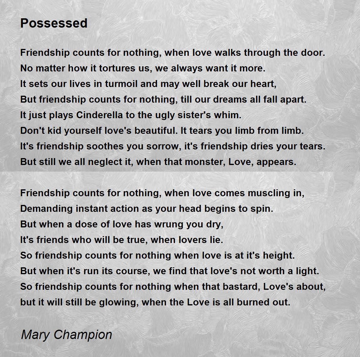 Friendship counts for nothing, when love comes muscling in,