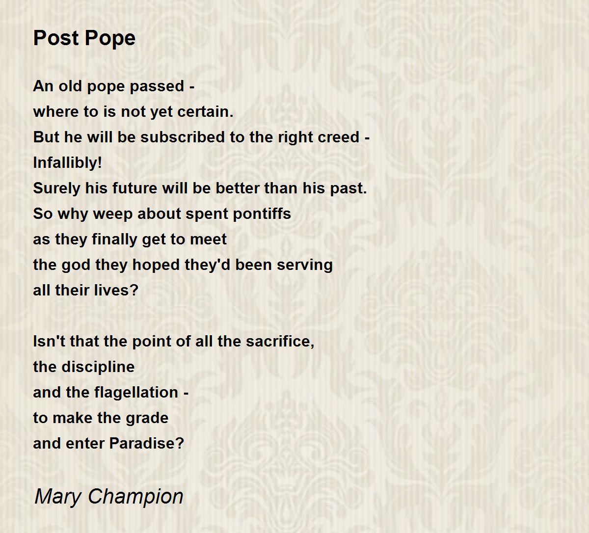 So why weep about spent pontiffs