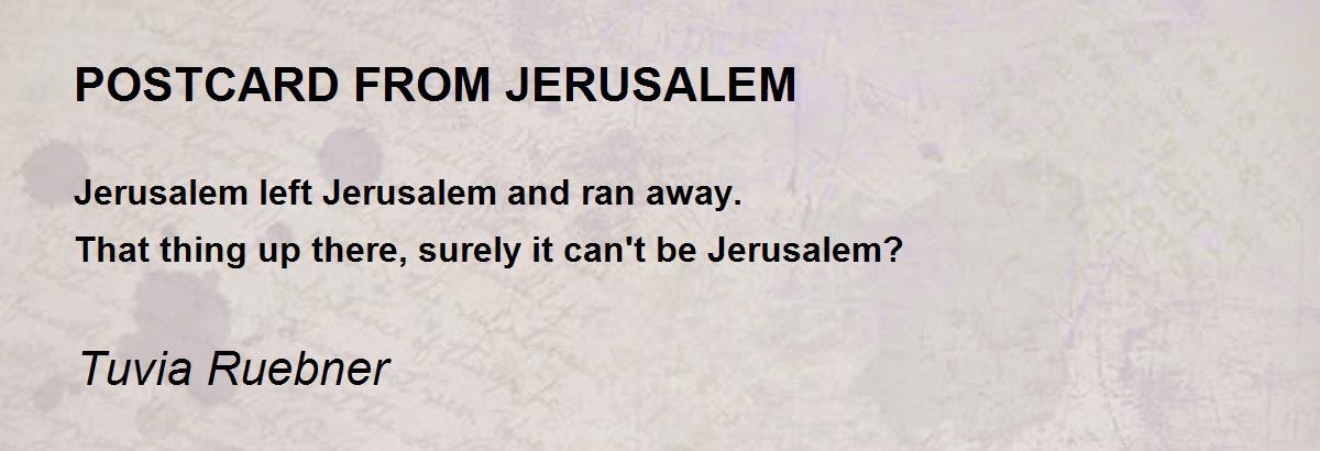 Jerusalem left Jerusalem and ran away. That thing up there, surely it can't be Jerusalem?