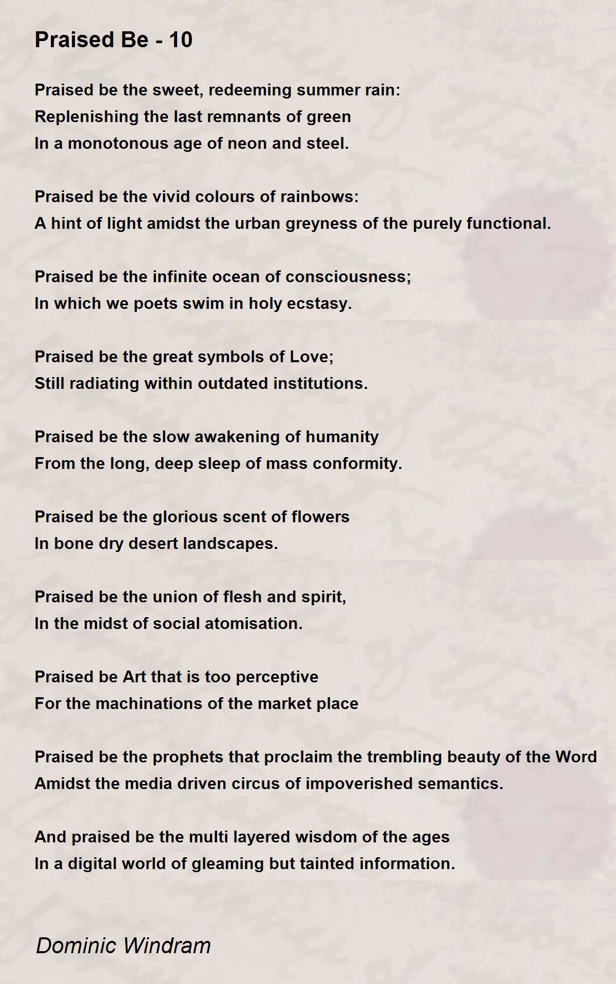 Praised be the prophets that proclaim the trembling beauty of the Word