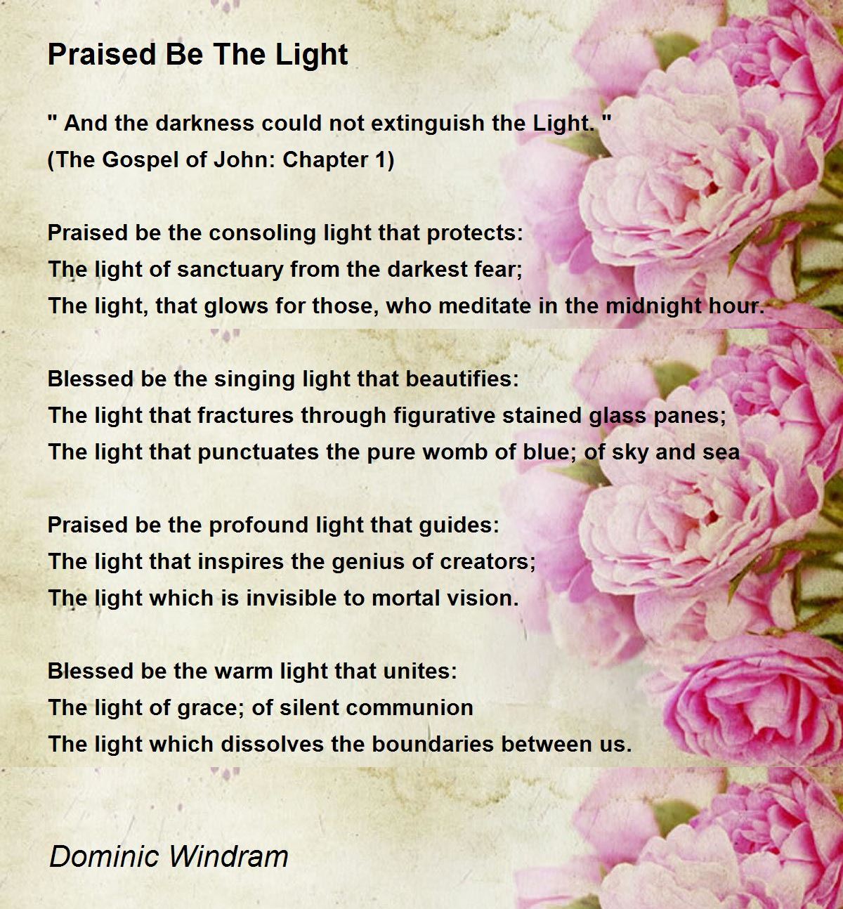 " And the darkness could not extinguish the Light." (The Gospel of John: Chapter 1)