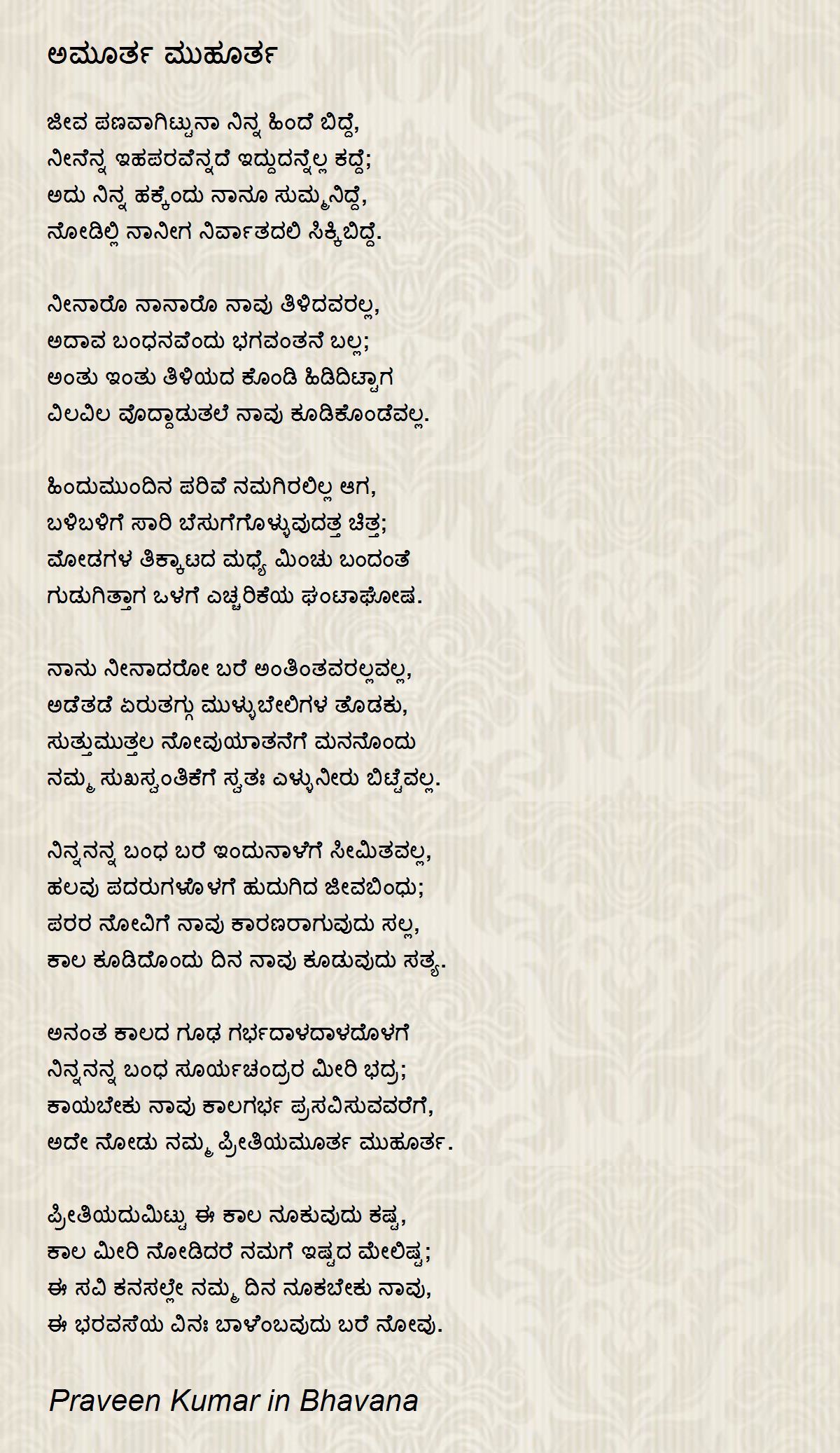 ನಿನ್ನನನ್ನ ಬಂಧ ಬರೆ ಇಂದುನಾಳೆಗೆ ಸೀಮಿತವಲ್ಲ,