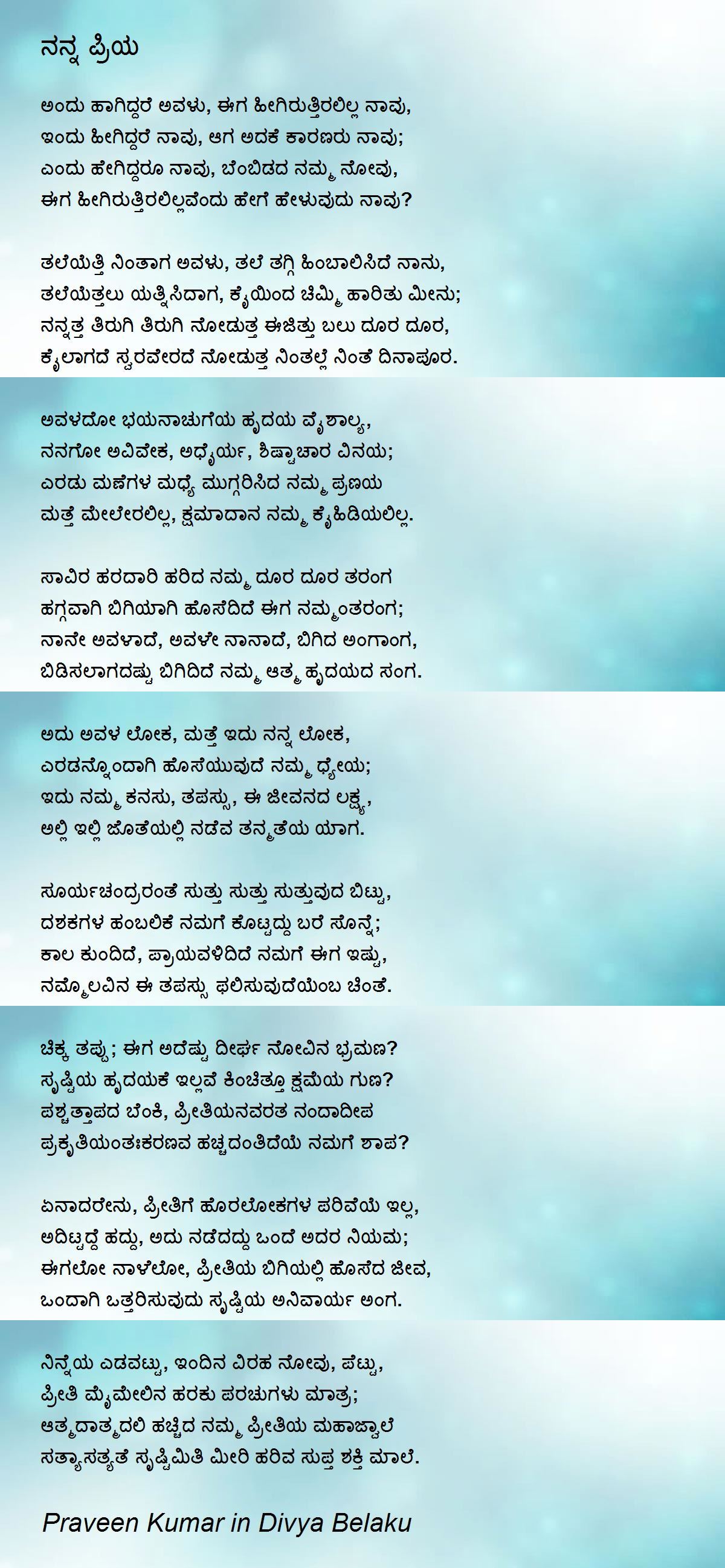 ನಮ್ಮೊಲವಿನ ಈ ತಪಸ್ಸು ಫಲಿಸುವುದೆಯೆಂಬ ಚಿಂತೆ.