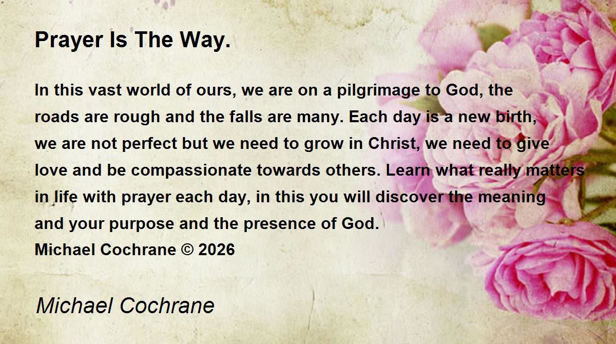 In this vast world of ours, we are on a pilgrimage to God, the roads are rough and the falls are many. Each day is a new birth, we are not perfect but we need to grow in Christ, we need to give love and be compassionate towards others. Learn what really matters in life with prayer each day, in this you will discover the meaning and your purpose and the presence of God.