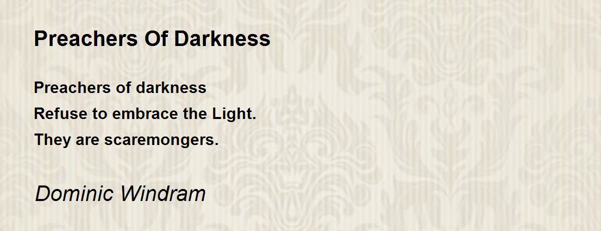 Preachers of darkness Refuse to embrace the Light. They are scaremongers.