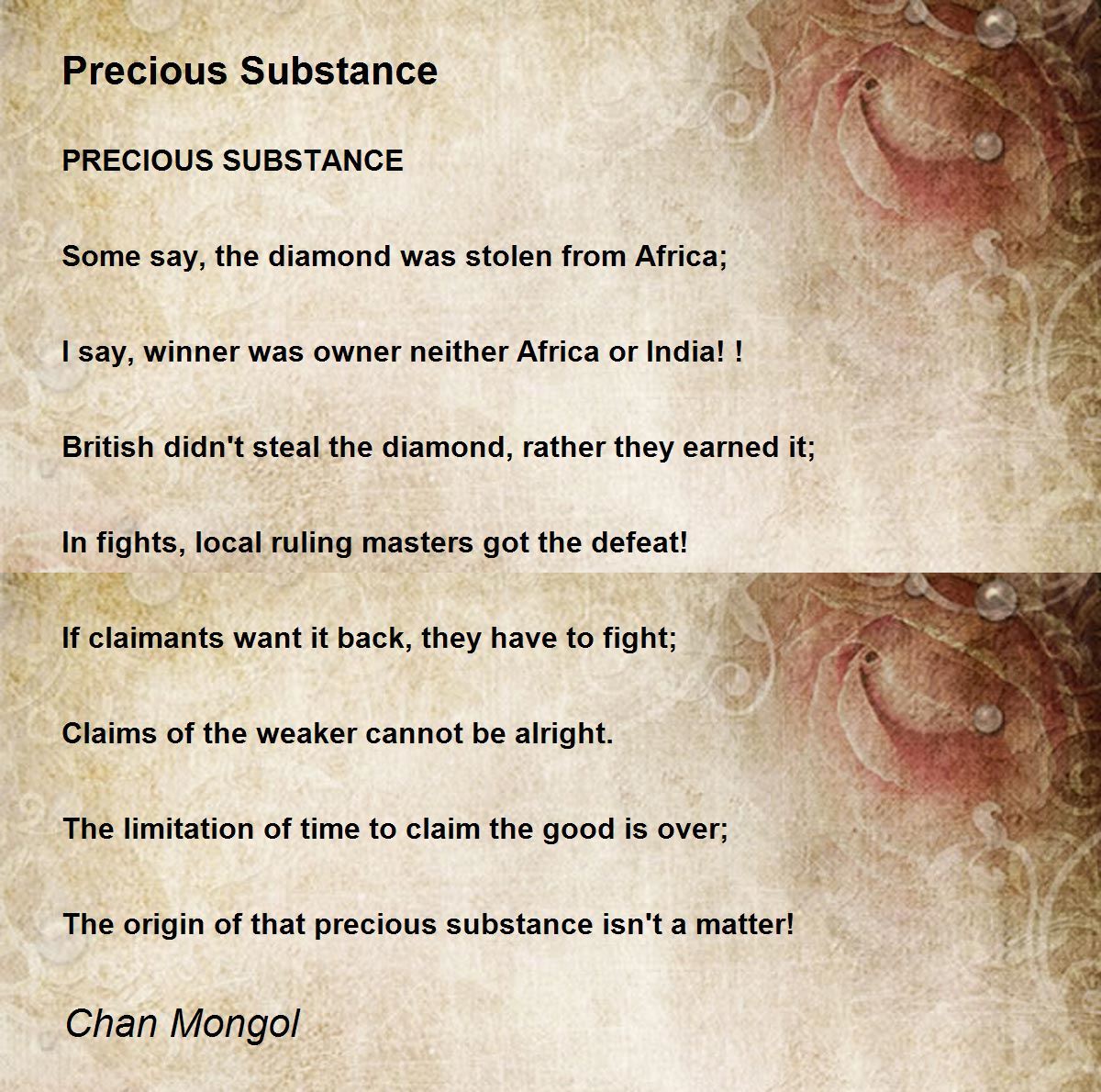 Some say, the diamond was stolen from Africa;