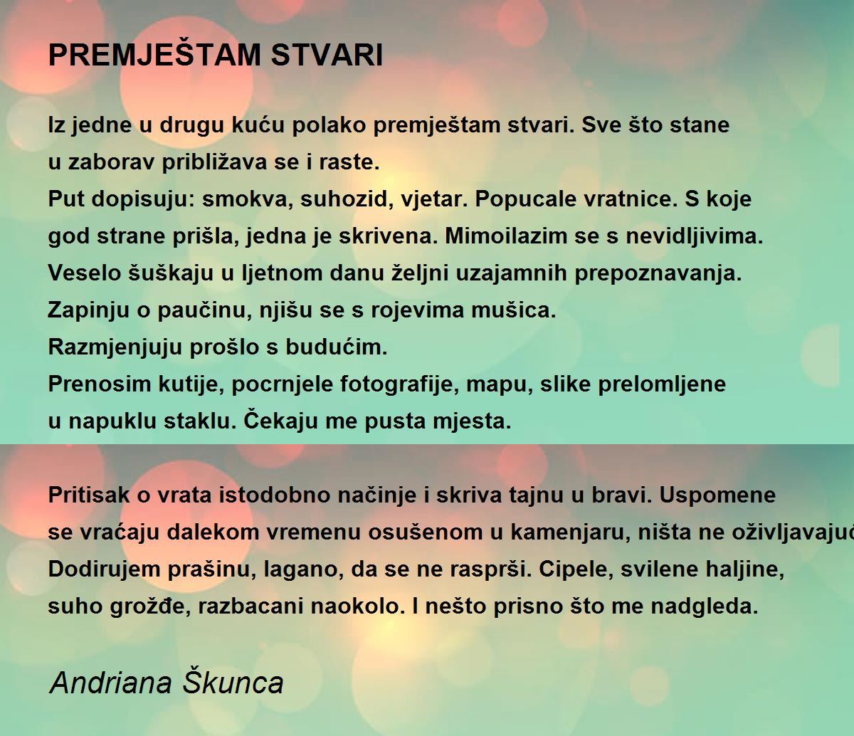 Iz jedne u drugu kuću polako premještam stvari. Sve što stane u zaborav približava se i raste.