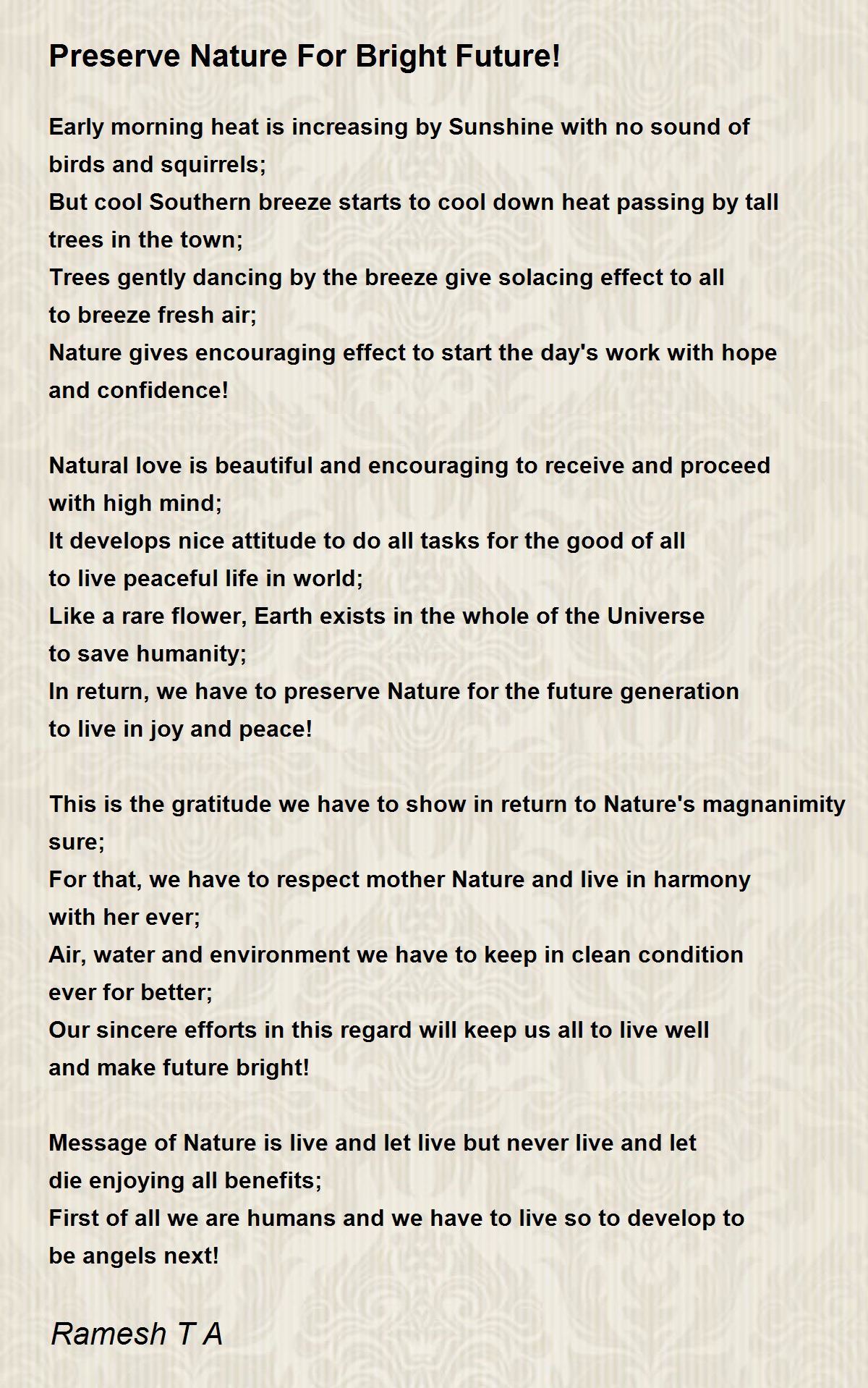 For that, we have to respect mother Nature and live in harmony with her ever;