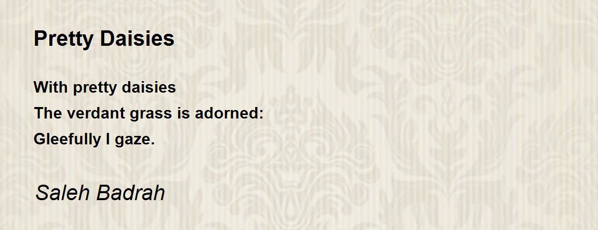 With pretty daisies The verdant grass is adorned: Gleefully I gaze.