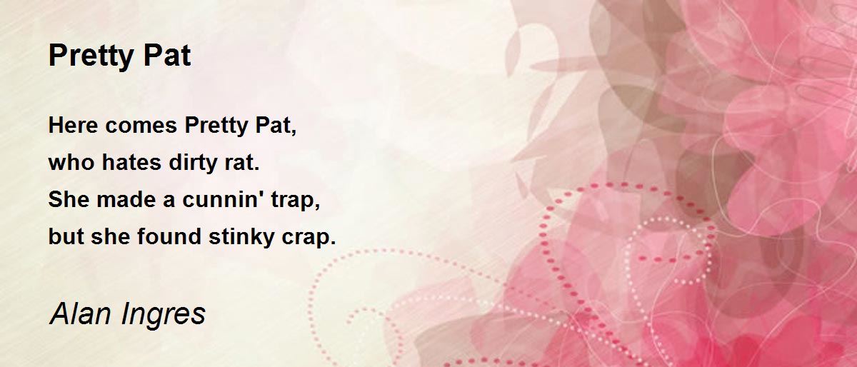 Here comes Pretty Pat, who hates dirty rat. She made a cunnin' trap, but she found stinky crap.