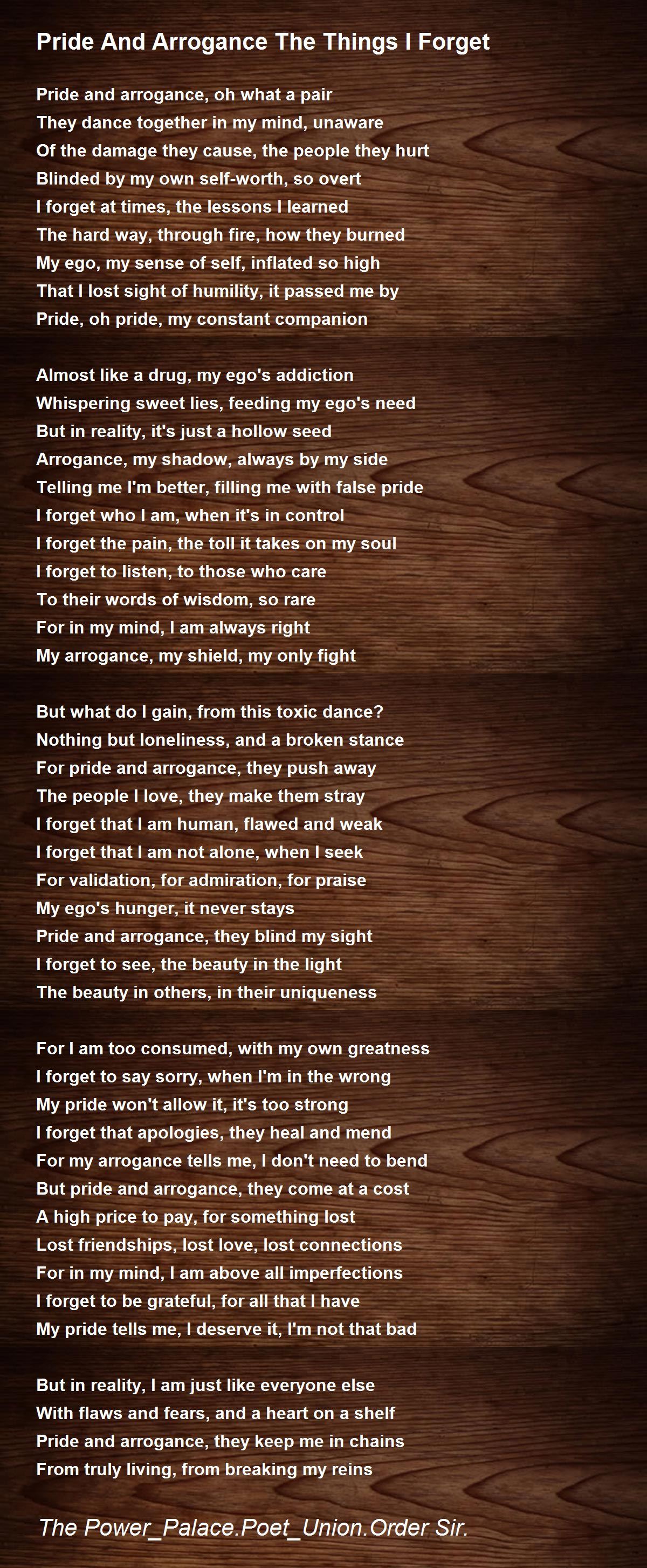 ®️ Pride And Arrogance The Things I Forget