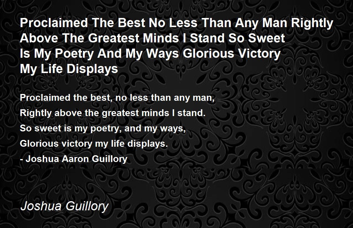 Proclaimed the best, no less than any man,