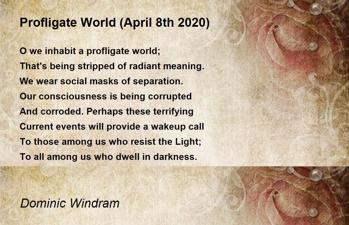 O we inhabit a profligate world;