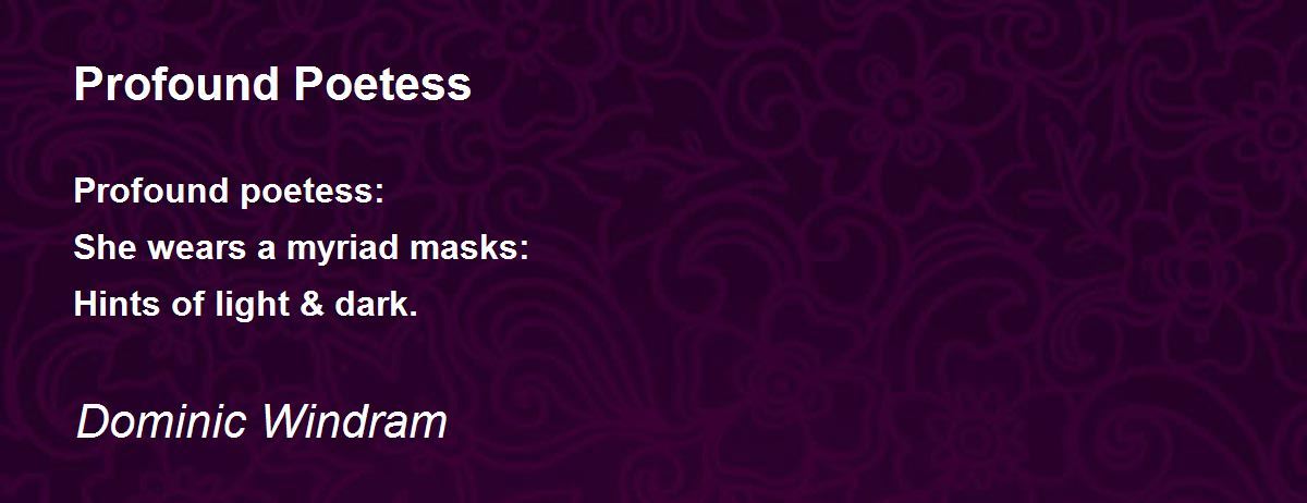 Profound poetess: She wears a myriad masks: Hints of light & dark.