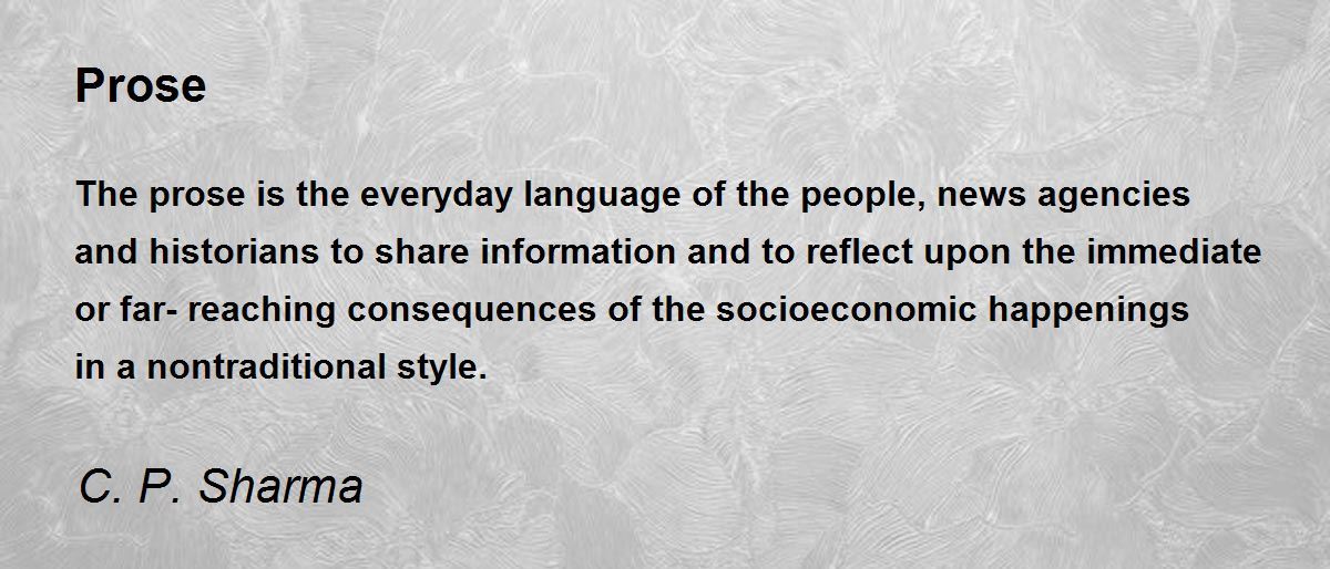 The prose is the everyday language of the people, news agencies and historians to share information and to reflect upon the immediate or far-reaching consequences of the socioeconomic happenings in a nontraditional style.