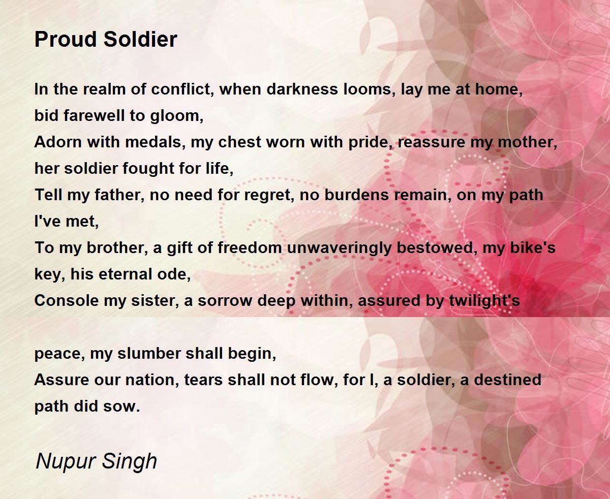 Assure our nation, tears shall not flow, for I, a soldier, a destined path did sow.