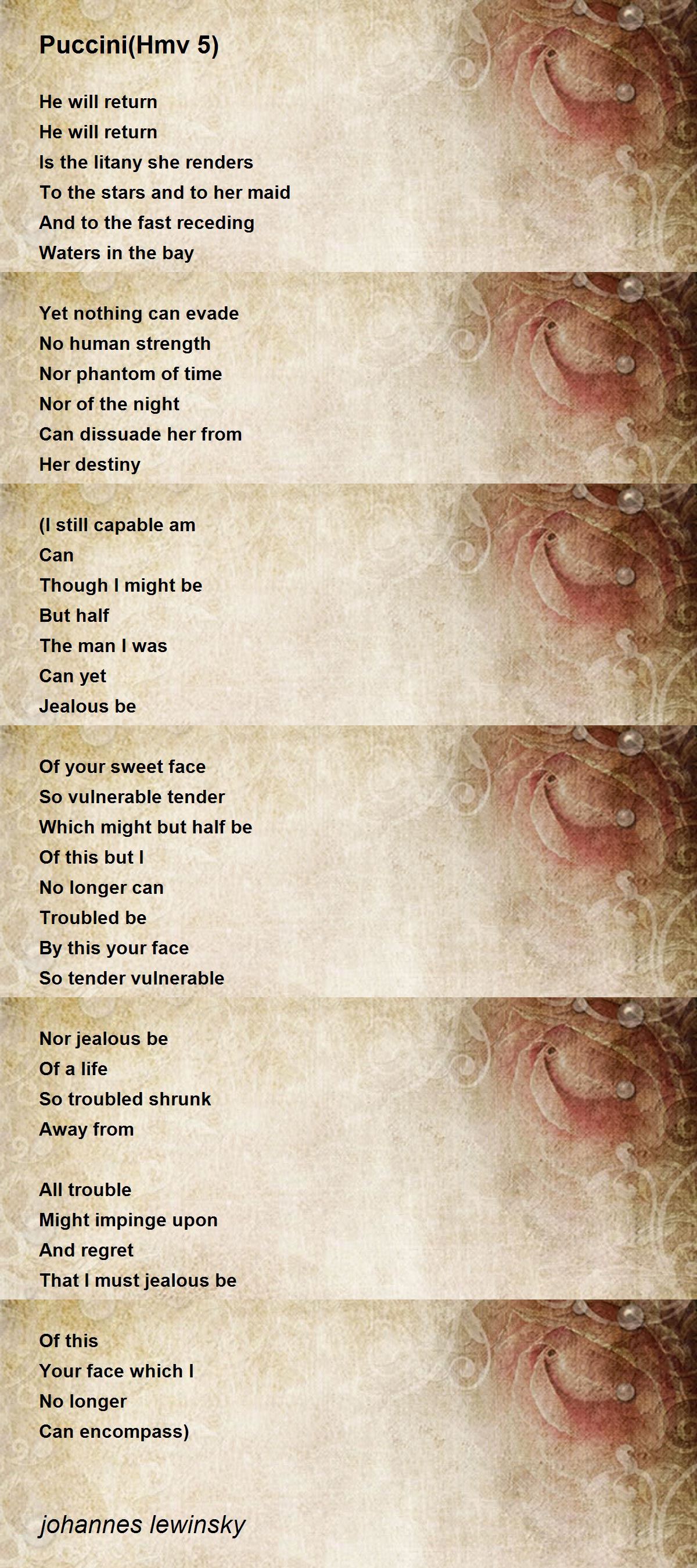 Giaomo Puccini, regarded by many to be the natural successor to Giuseppe Verdi, though the two composers could not be more different. Puccini had a great facility for plangent melodies which captured the sufferings of dispprized lovers, and te broken hearted generally - hence his enduring popularity. Shortly before his death he was assailed by an ugly domestic tragedy in the form of the suicide of a young servant girl with whom Puccni's wife Elvira was convinced Puccini was having an affair. The girl's death seemed to echo the fate of Ch Cho San in Madama Butterfly, and was surely the inspiration for the character of Liu in Turandot.
