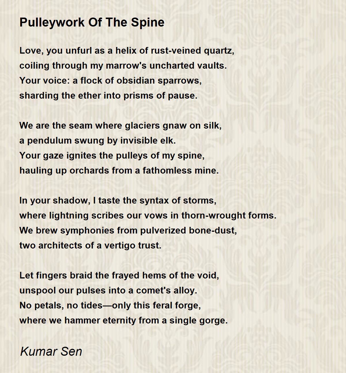 Your gaze ignites the pulleys of my spine,