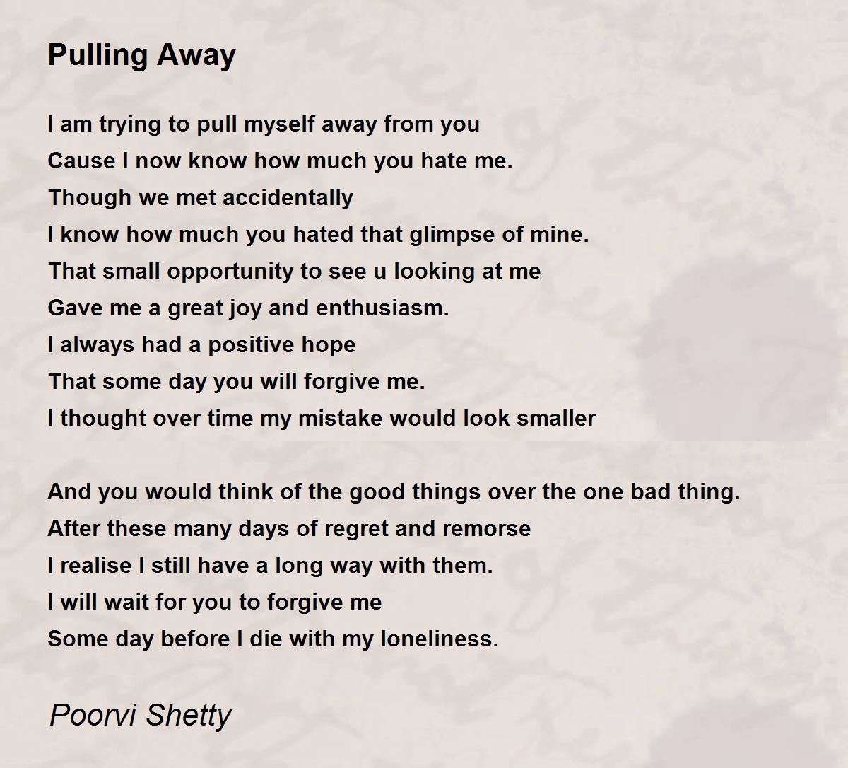 The pulling away I am talking about is due to love and not hatred. The precaution of not hurting a wounded heart further is the cause for pulling away oneself.