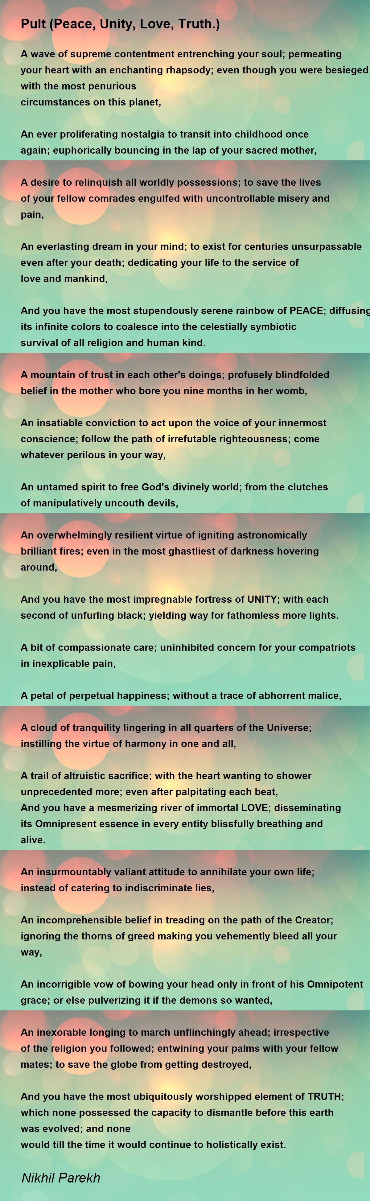 And you have the most stupendously serene rainbow of PEACE; diffusing its infinite colors to coalesce into the celestially symbiotic survival of all religion and human kind.