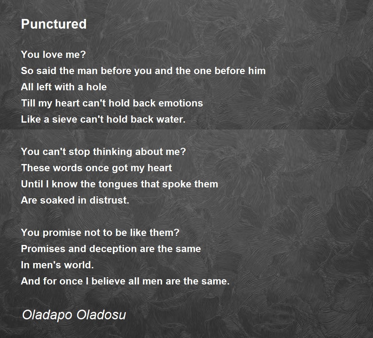 And for once I believe all men are the same.