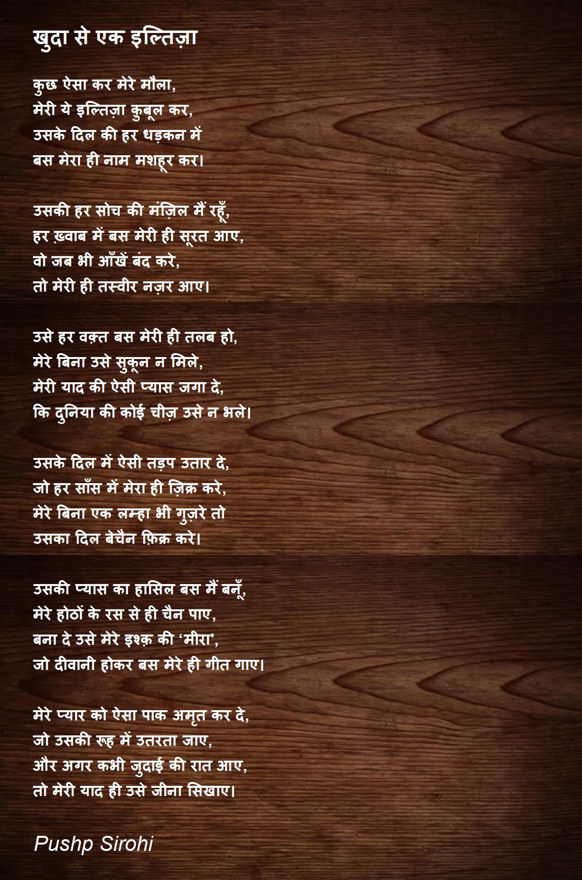 खुदा से एक इल्तिज़ा Poem by Pushp Sirohi
