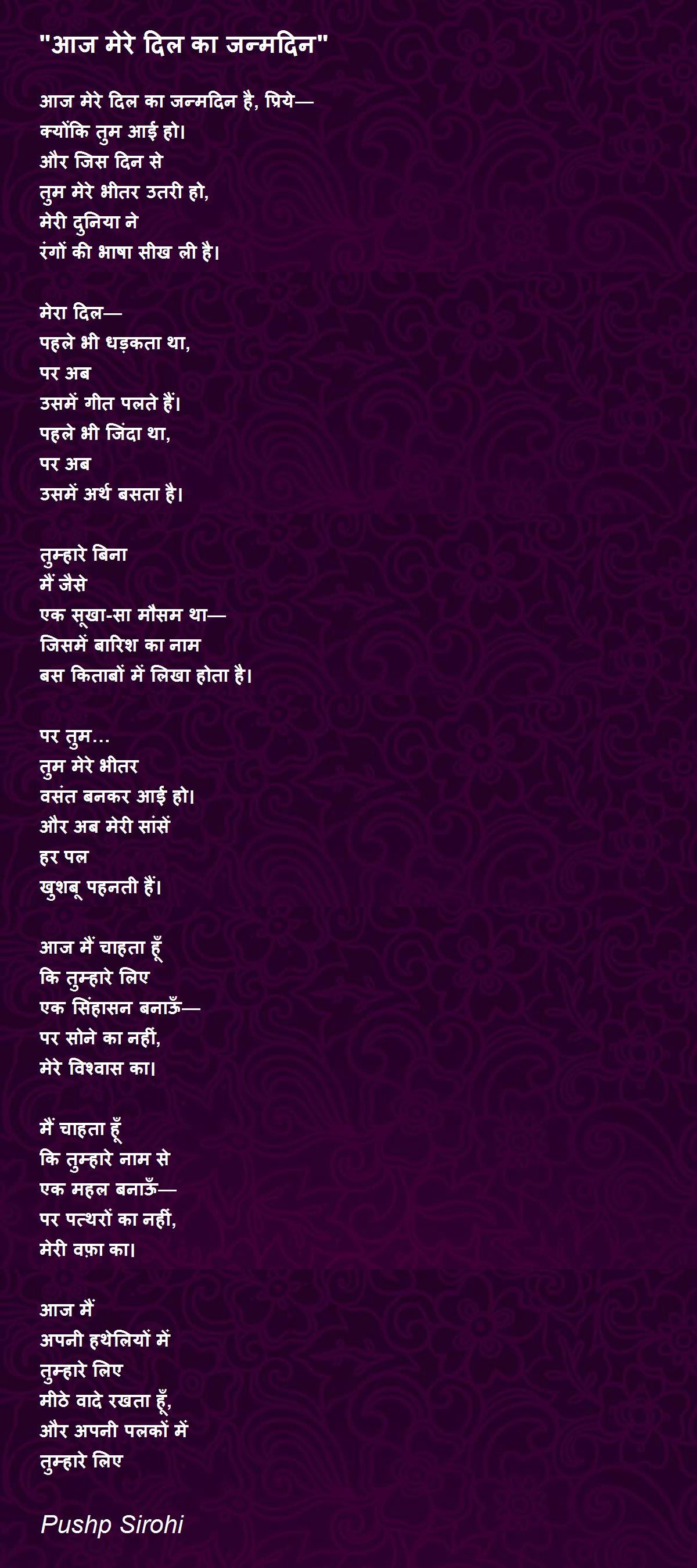 आज मेरे दिल का जन्मदिन है, प्रिये—