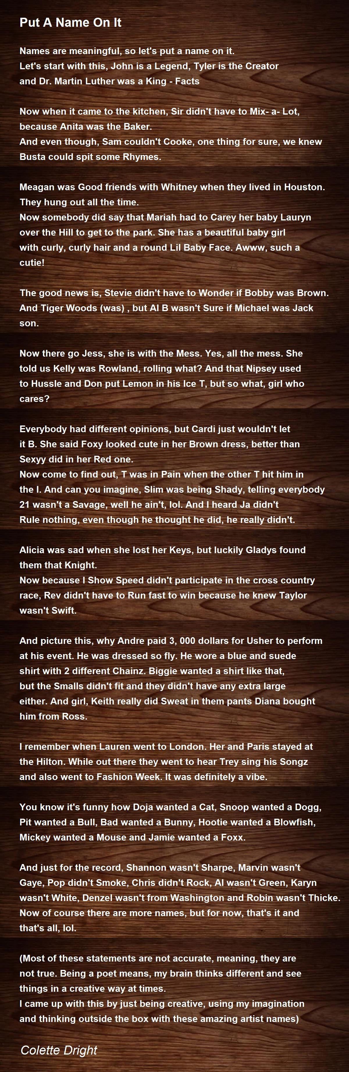 And just for the record, Shannon wasn't Sharpe, Marvin wasn't Gaye, Pop didn't Smoke, Chris didn't Rock, Al wasn't Green, Karyn wasn't White, Denzel wasn't from Washington and Robin wasn't Thicke.