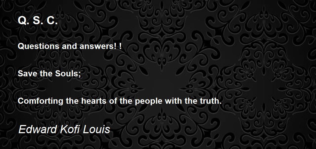 Questions and answers! ! Save the Souls; Comforting the hearts of the people with the truth.