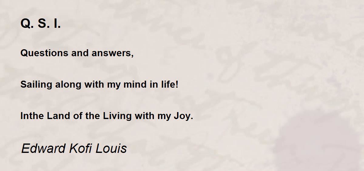 Questions and answers, Sailing along with my mind in life! Inthe Land of the Living with my Joy.