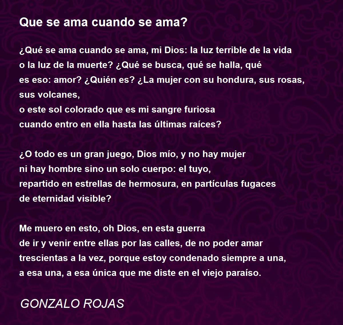 es eso: amor? ¿Quién es? ¿La mujer con su hondura, sus rosas, sus volcanes,