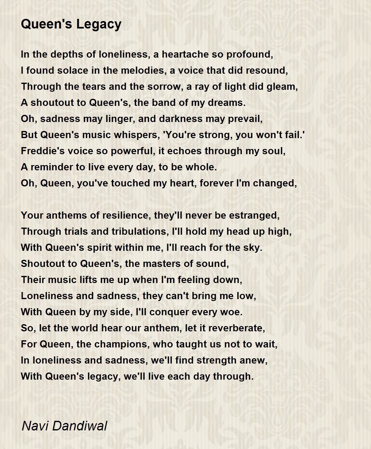 With Queen's legacy, we'll live each day through.