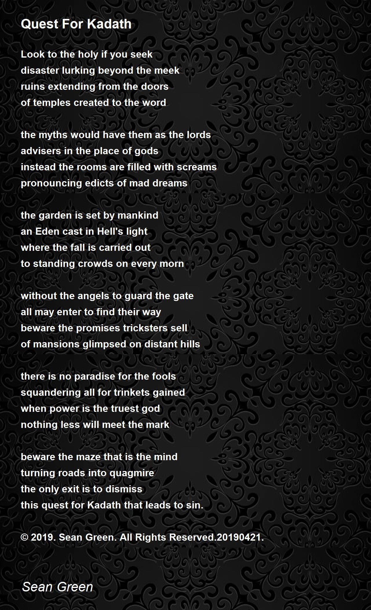 this quest for Kadath that leads to sin.