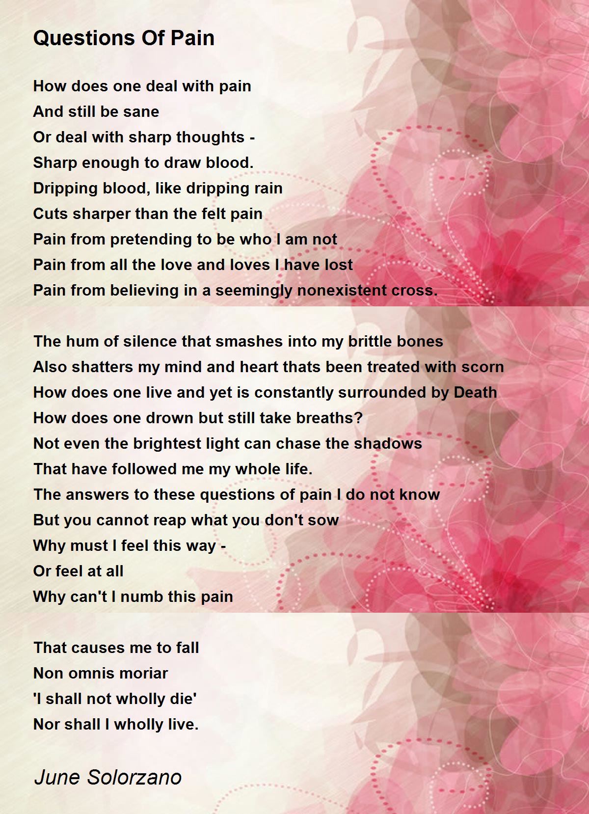 The answers to these questions of pain I do not know