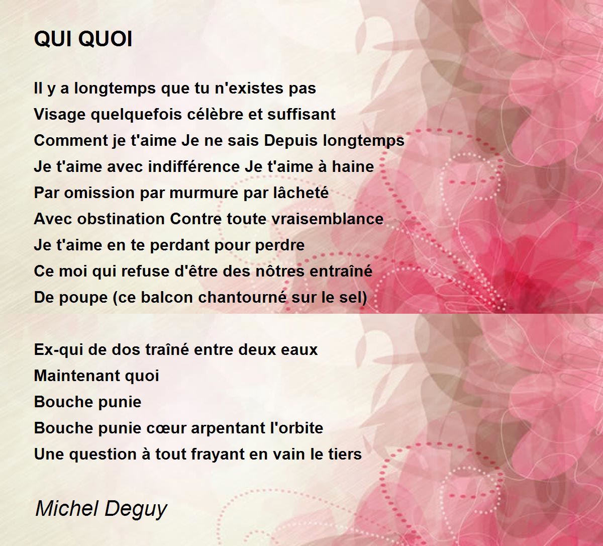Je t'aime avec indifférence Je t'aime à haine