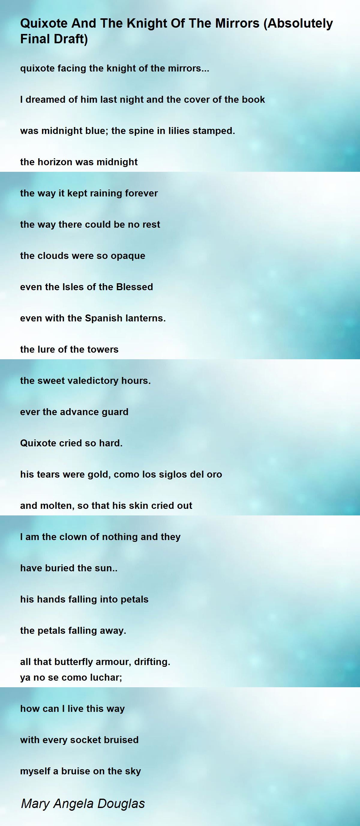 Quixote cried so hard.