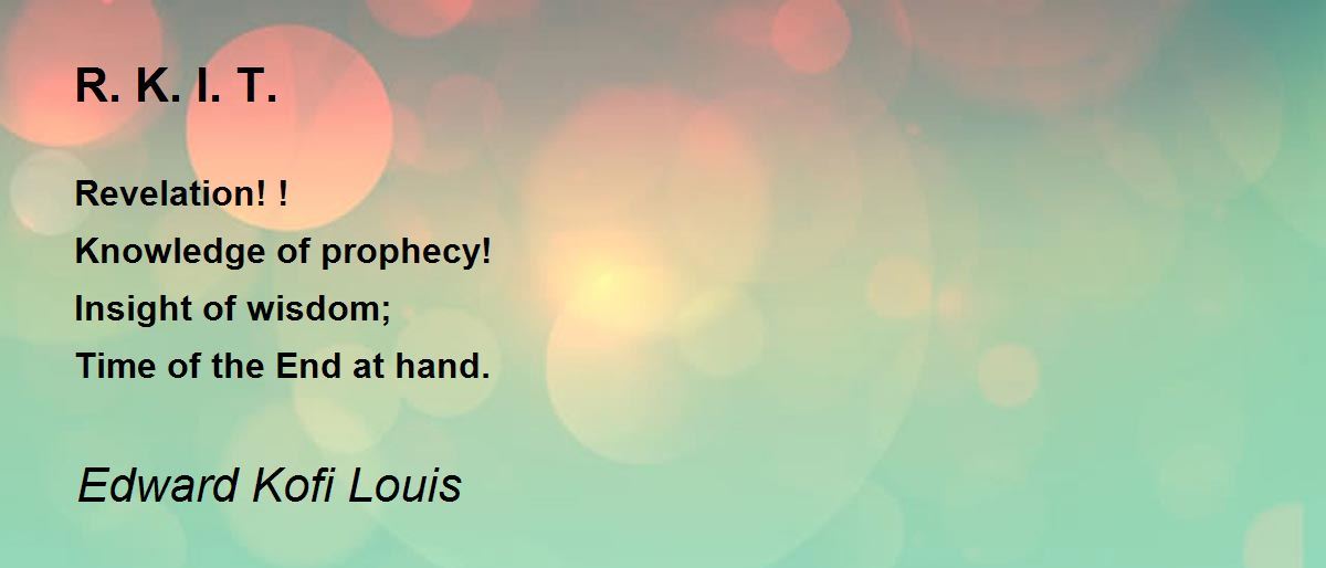 Revelation! ! Knowledge of prophecy! Insight of wisdom; Time of the End at hand.