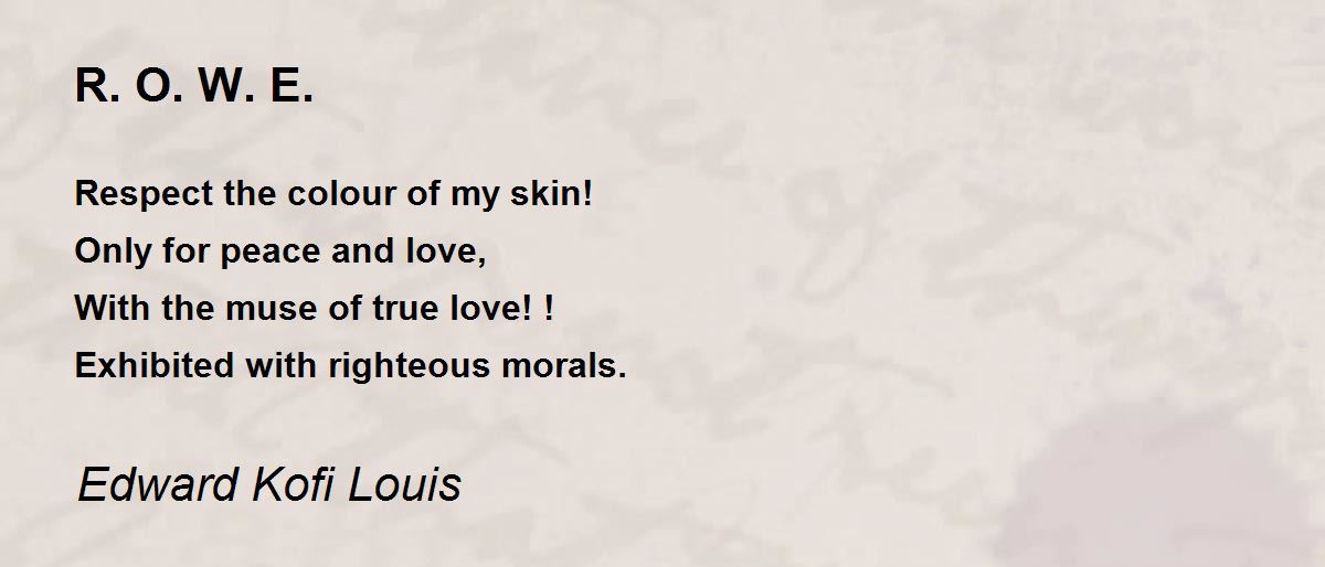 Respect the colour of my skin! Only for peace and love, With the muse of true love! ! Exhibited with righteous morals.
