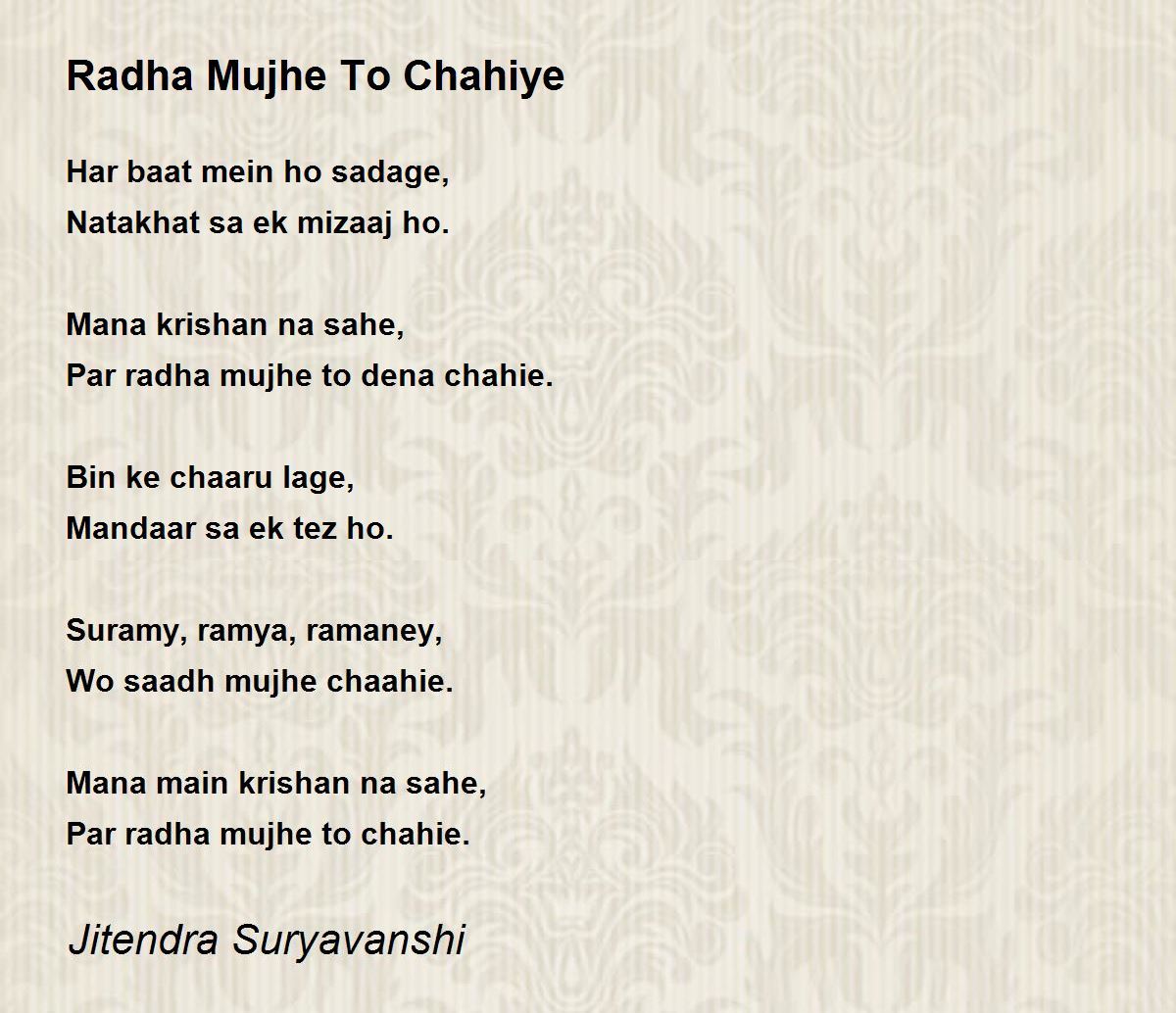 Par radha mujhe to chahie.