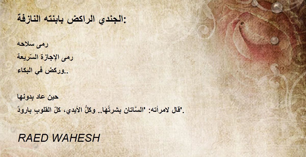 قال لامرأته: 'السَّاتان بشرتُهَا.. وكلُّ الأيدي، كلّ القلوبِ بارودٌ'.