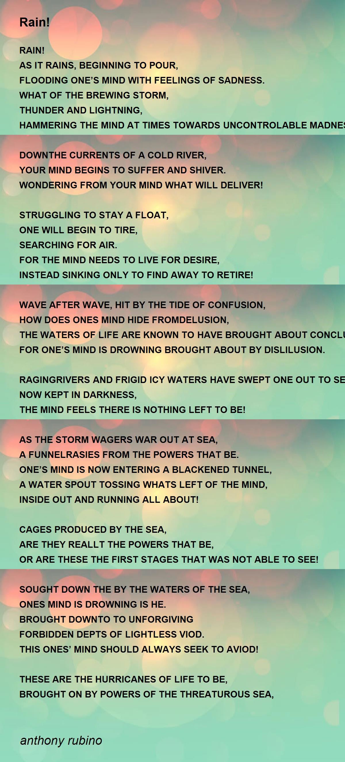 AS IT RAINS, BEGINNING TO POUR,