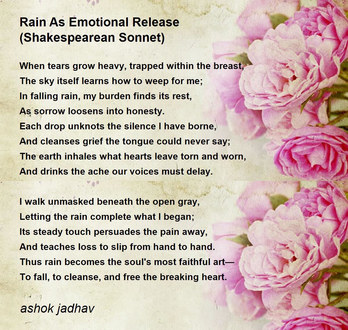 In falling rain, my burden finds its rest,