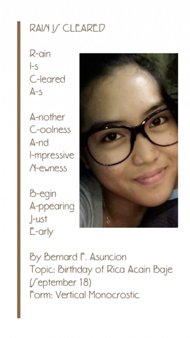 Topic: Birthday of Rica Acain Baje (September 18)