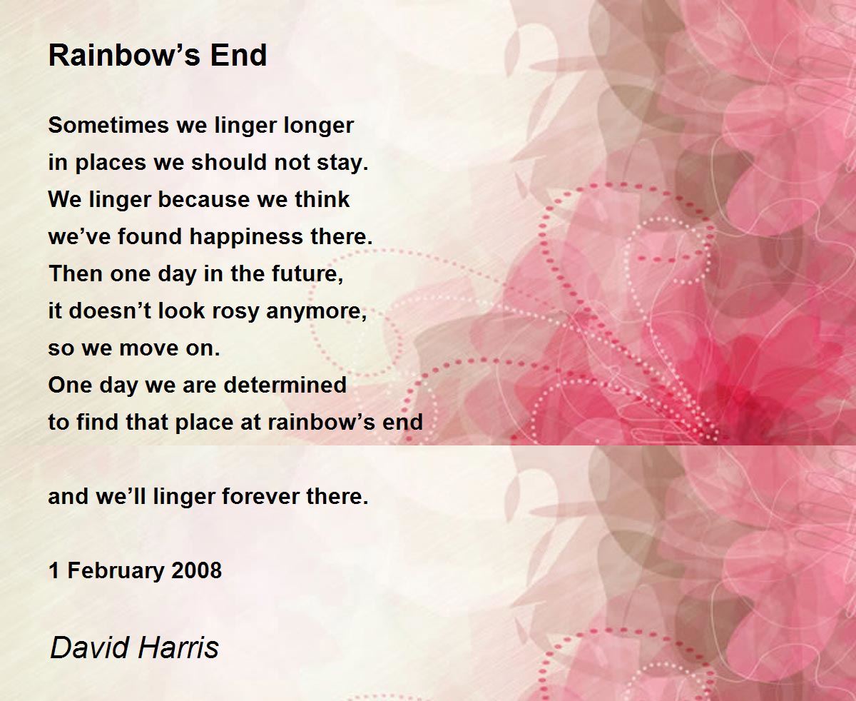 I hope the search will not be in vain, David, and that there is peace at the Rainbows End. Lovely write. Love and hugs Ernestine XXX