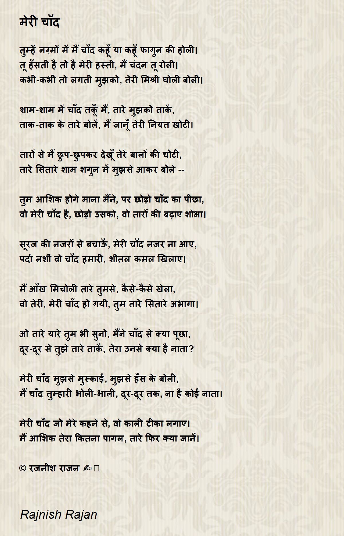 मेरी चाँद मुझसे मुस्काई, मुझसे हँस के बोली,