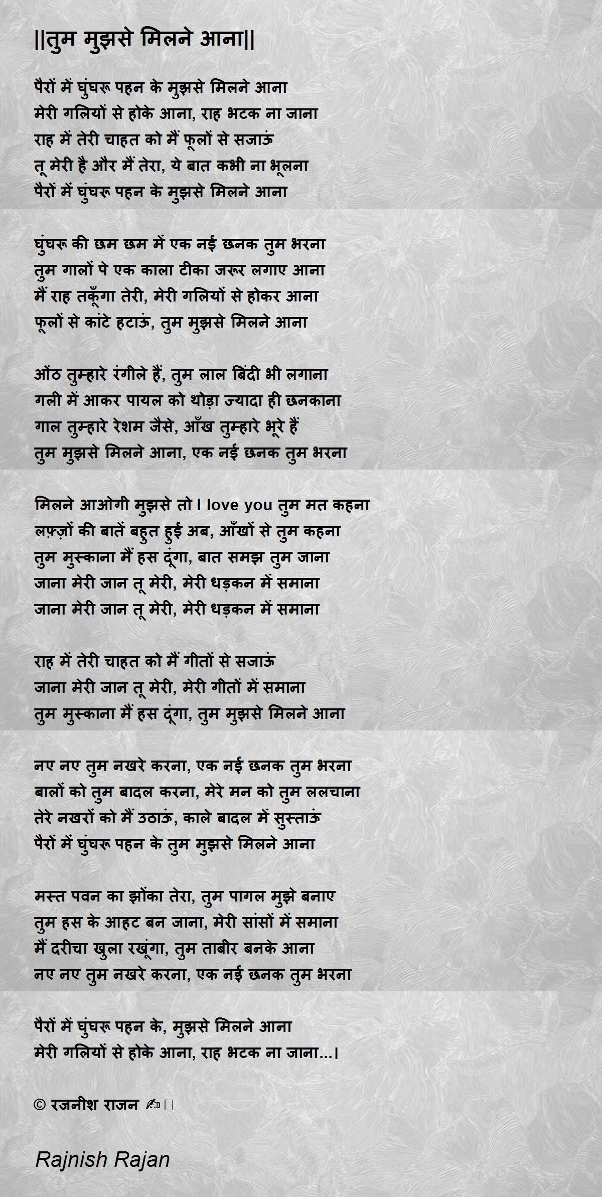 तुम मुझसे मिलने आना, एक नई छनक तुम भरना